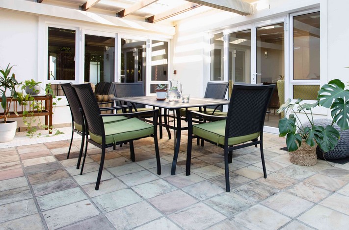Concrete and cement tiles have a rough texture, which makes them naturally slip-resistant, making them perfect for wet areas like patios near pools or gardens. However, these tiles can be porous and may need to be sealed regularly to prevent water absorption and staining.