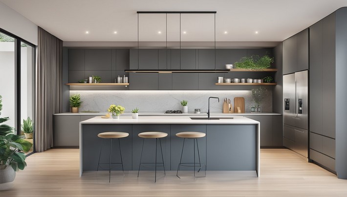• Matte Finishes: Glossy finishes were once the go-to choice for modern kitchens, but matte finishes are now gaining popularity for their sleek, understated look. Matte finishes are less reflective, creating a more subtle and sophisticated aesthetic. Consider matte black or charcoal gray for a bold, dramatic appearance or soft beige for a light and airy feel.