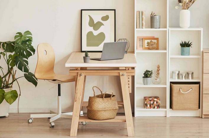 Clear plastic bins allow you to quickly identify the contents, while decorative boxes can blend seamlessly into the room’s decor, maintaining a clean, stylish look. You can use bins to store office supplies, extra paperwork, or even personal items that you don’t need to access regularly but still want to keep close by.